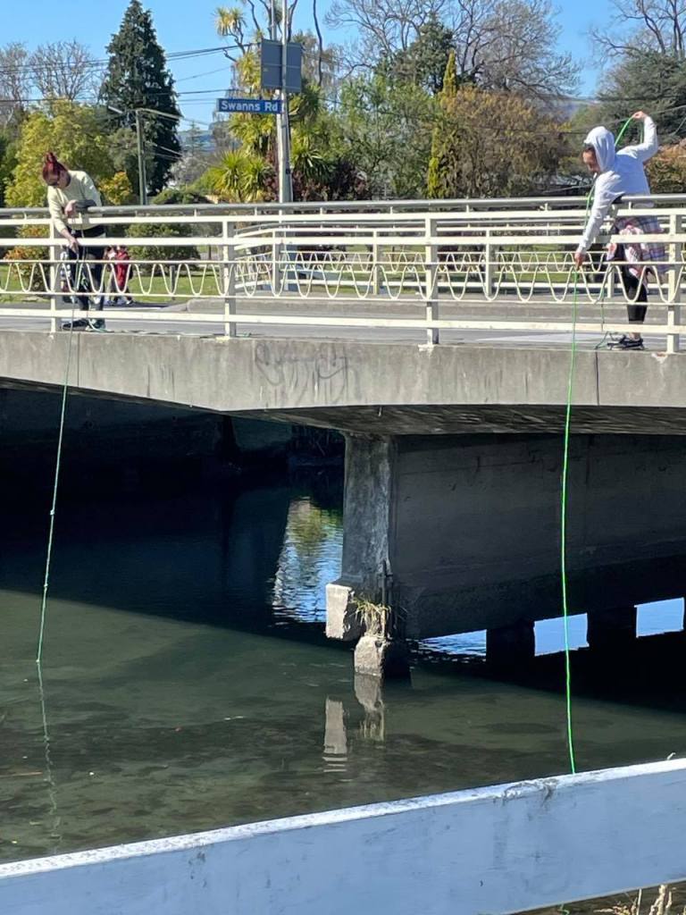 As I was walking to the supermarket yesterday, backpack on and taking the river route, I encountered a strange sight on the bridge. A couple of young women were leaning over the bridge railing and doing peculiar things with the line they were each dangling over it into the water. Now, a strange sight was not an opportunity to be missed to stick my beak in, and find out what was going on.