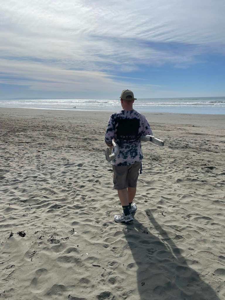 So, I said to the nephew, who lives in the back unit of the three on the property we live on, how about we go to the beach and grab some driftwood and copy this idea. From experience, I know that driftwood can be deceptively bigger and heavier to carry than it looks when it’s lying on the beach, so some assistance wouldn’t go amiss. The nephew said sure, so we made our first foray to collect suitable pieces.