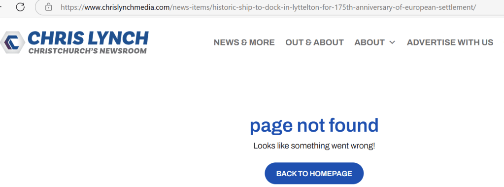 Chris Lynch Media covers Christchurch and surrounds, and is a good source of local news. On this occasion, the info he initially received and what actually eventuated had a first-time incongruence, until he corrected it, that I’ve been aware of.